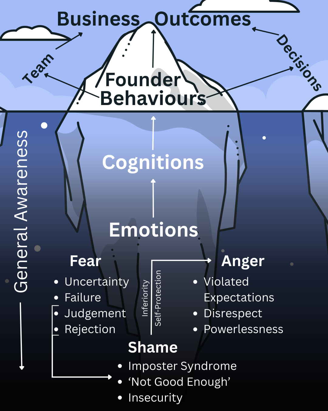When a founder is operating from unexamined fear, shame or anger, their thinking often becomes distorted in predictable ways. That distorted thinking then drives behaviour. And behaviour shapes business outcomes.